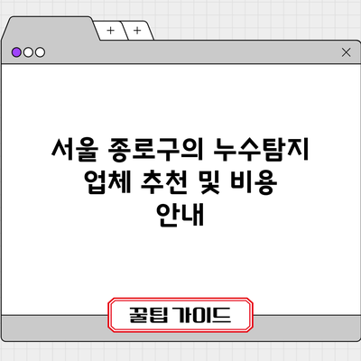 서울 종로구에서 누수탐지 업체를 찾고 계신가요? 누수 문제는 무시할 수 없는 심각한 상황을 초래할 수 있으며, 따라서 신뢰할 수 있는 업체를 찾는 것이 중요해요. 이번 글에서는 서울 종로구의 누수탐지 업체 추천과 함께 각 업체의 비용, 특장점, 그리고 앞으로의 조치 방법까지 상세히 알아보겠습니다.