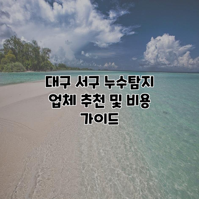 정보를 통해 전문적이고 매력적인 누수 탐지 업체를 소개해 드리겠습니다. 대구 서구에 위치한 업체들은 각각의 특성과 장점을 지니고 있으니, 선택에 참고하시기 바랍니다.