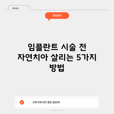 임플란트 시술을 고려하고 계신가요? 그렇다면, 임플란트를 시술받기 전에 자연치아를 보호하는 방법을 알아두는 것이 매우 중요해요. 자연치아는 우리의 구강 건강에 있어 중요한 역할을 하며, 최대한 보존하는 것이 비용과 시간 측면에서도 유리하답니다. 이번 글에서는 임플란트 시술 전 알아야 할 자연치아 살리는 5가지 방법을 자세히 살펴보겠습니다.