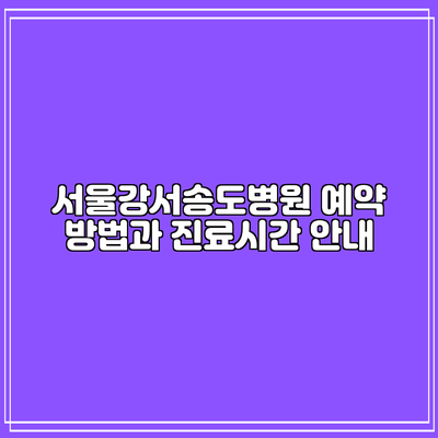 ✅ 서울강서송도병원의 예약 방법과 진료시간을 한눈에 확인해 보세요.