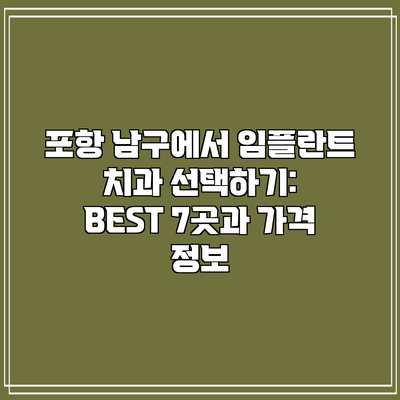 포항 남구에서 임플란트 치과 선택하기: BEST 7곳과 가격 정보